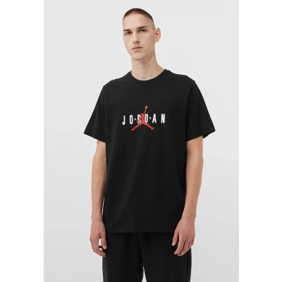 The Nike Jordan Air Wordmark with Jump man Logo T-Shirt is made with soft fabric for all-day comfort on and off the court . - - . Standard fit for a relaxed, easy feel . - - . Short sleeve, Crew neck . - - . Graphics on front and back . - - . Imported.