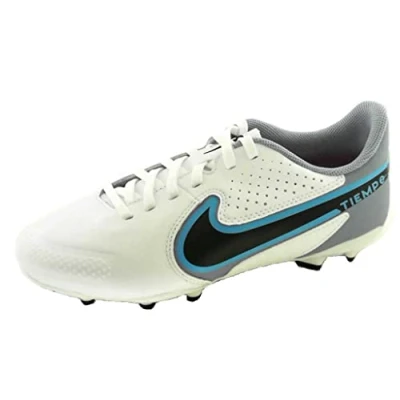 NIKE Jr. Tiempo Legend 9 Academy Mg Sneaker, White Black Baltic Blue Pink Blast, 4.5 UK