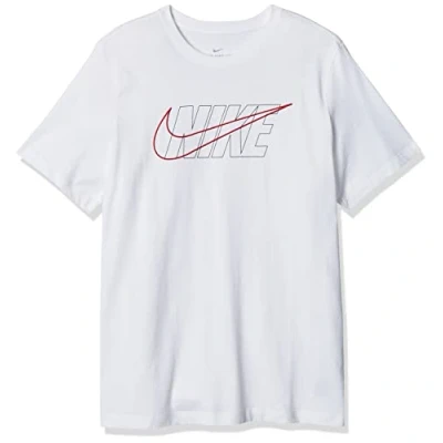 Nike M NSW TEE Blk + Swsh Essntls T Shirt White/Black/(University Red), X Large