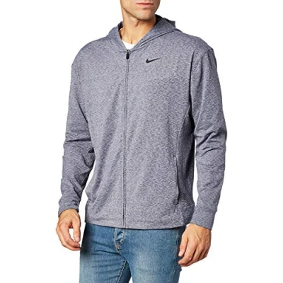 Nike Men Dri Fit Yoga Training Hoodie Midnight Navy/Heather/Black, M