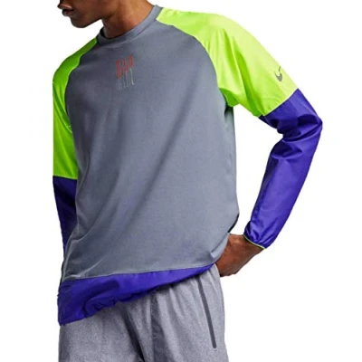 Nike Men M Nk Elmnt Mix Crew Long Sleeved T Shirt Armory Blue/Volt/Reflective Si, Small