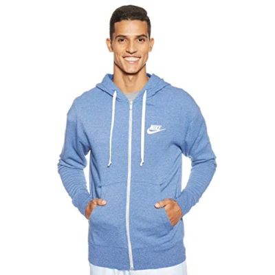 Nike Men Sportswear Heritage Fleece Full Zip Hoodie Indigo Force/Heather/Sail, Large