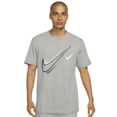 NIKE Mens T Shirt Court Swoosh Logo Tee Short Sleeve Classic White DQ3944 100 New (UK, Alpha, S, Regular, Grey)
