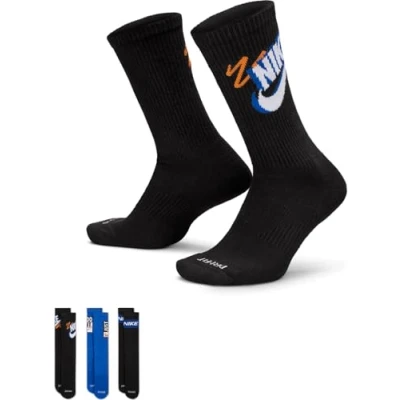 Nike Performance CREW Unisex 3 PACK Sports socks, Size: 8 11, Black/white/sport royal