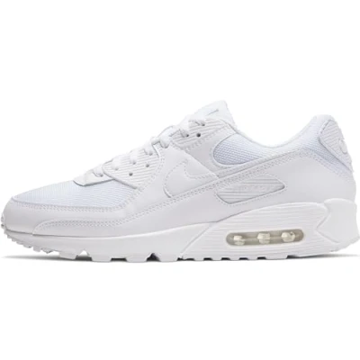 COMFORT, HERITAGE.NOTHING BETTER.Nothing as fly, nothing as comfortable, nothing as proven.The Nike Air Max 90 stays true to its OG running roots with the iconic Waffle sole, stitched overlays and classic TPU details.Classic colours celebrate your fresh look while Max Air cushioning adds comfort to the journey.Performance ComfortOriginally designed for performance running, the Max Air unit in the heel adds unbelievable cushioning.Versatile StyleThe low-top design combines with a padded collar for a sleek look that feels soft and comfortable.Retro VibesThe stitched overlays and TPU accents add durability, comfort and the iconic '90s look you love.Product DetailsTextile upper with leather and synthetic overlaysFoam midsoleRubber Waffle outsole adds traction and durabilityColour Shown: White/White/Wolf Grey/WhiteStyle: CN8490-100Nike Air Max OriginsRevolutionary Air technology first made its way into Nike footwear in 1978.In 1987, the Air Max 1 debuted with visible Air technology in its heel, allowing fans more than just the feel of Air cushioning—suddenly they could see it.Since then, next-generation Air Max shoes have become a hit with athletes and collectors by offering striking colour combinations and reliable, lightweight cushioning.