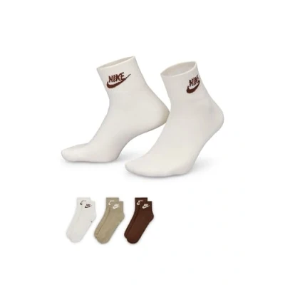 Nike Sportswear Everyday Essential Ankle Unisex 3 PACK Socks, Size: 11 14.5, Sail/desert khaki/fauna brown/light khaki