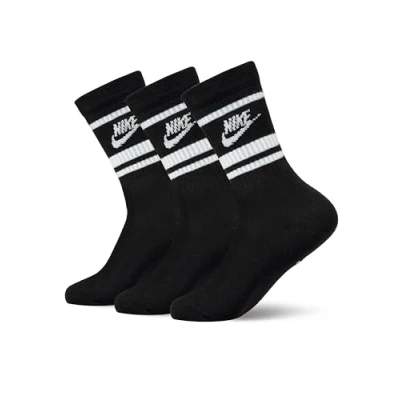 Nike Sportswear Everyday Essential CREW Stripes Unisex 3 PACK Socks, Size: 11 14.5, Black white