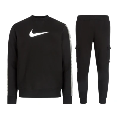 Nike Sportswear Mens Repeat Crew Fleece Tracksuit Black Cotton Size Medium