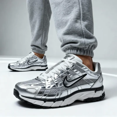 NIKE Sportswear P6000 SHOE Trainers, Size: 6.5, Metallic silver/sail/black Textile