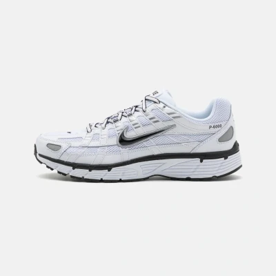 Nike Sportswear P6000 Unisex Trainers, Men's, Size: 9.5, White/black/metallic silver Imitation leather/ textile