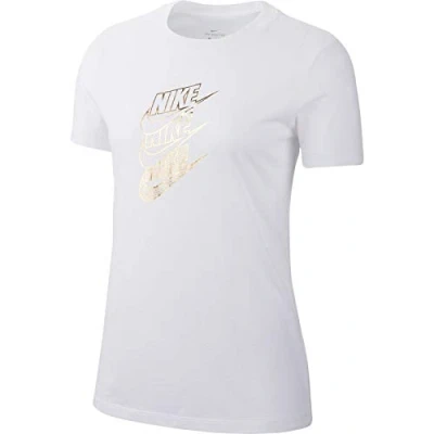NIKE Stimmt Shine T Shirt White/Metallic Gold, Small