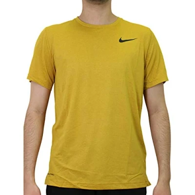 NIKE Top SS HPR Dry T Shirts Men's Tawny/Dark Sulfur/Heather/Black, Large
