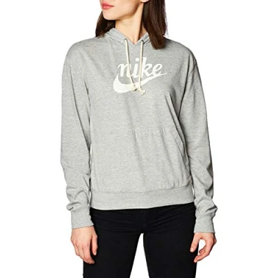 Nike W Nsw Gym VNTG Hoodie Hbr Sweatshirt Dark Grey Heather/(Sail), XX Large