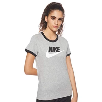 Nike W NSW TEE Futura RINGE T Shirt Dk Grey Heather/Black/(White), X Small