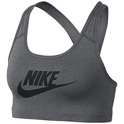 NIKE Women Classic Swoosh Futura Sports Bra Carbon Heather/Black, Large
