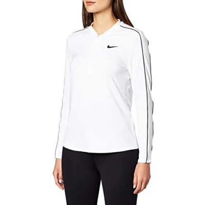 Nike Women Court Dri FIT 1/2 Zip Tennis Top White/Black/Black/Black, M