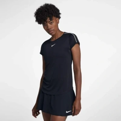 Nike Women Court Dri FIT Tennis Top Black/White/White/White, Small