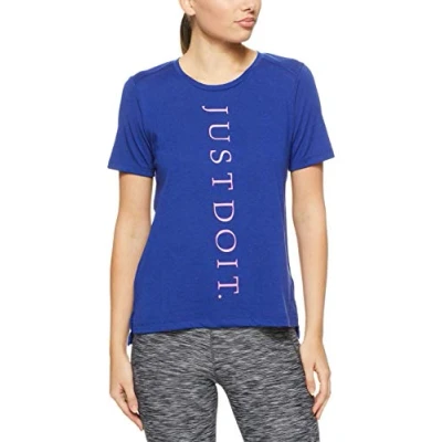 Nike Women's Miler JDI Short Sleeve Running T Shirt,Multicolour(Deep Royal Blue/Reflective Silver),Medium