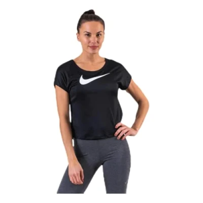 Nike Women Swoosh Run Short Sleeve Top Black/White, Small