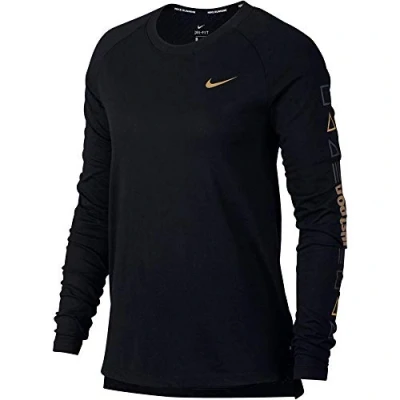 Nike Women Tailwind flash Longsleeve Woman Black/metallic gold, L