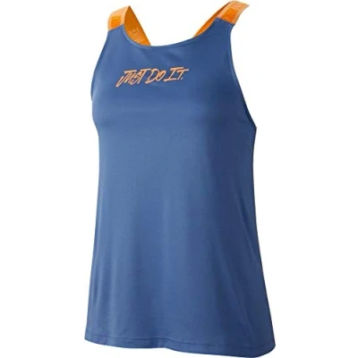 NIKE Women Tanktop Dri Fit Elastika Just Do It Grx Women's Indigo Storm/Gloss Fuel Orange, X Small