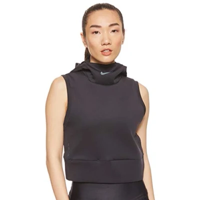 NIKE Women W NK RN TCH PCK VEST HD Sweatshirt Oil Grey/Reflect Black, Large
