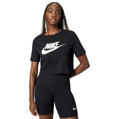 NIKE Women's W Nsw Tee Essntl Crp Icn Ftra T shirt, Black/(White), XS UK