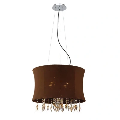 Niki Ceiling Pendant 4 Light with Brown Shade Polished Chrome, Coffee Crystal