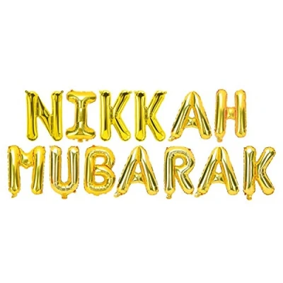 Nikkah Mubarak Letter Foil Balloons Islamic Muslim Wedding Balloon Banner Set 16" Metallic Silver Rose Gold (Gold)