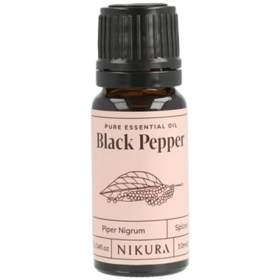 Nikura Black Pepper Essential Oil 10ml 100% Pure Natural Oils Perfect for Aromatherapy, Diffusers, Soap Making, Candle Making Great Stress Relief, Managing Cravings Vegan & UK Made