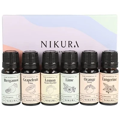 Nikura Citrus Essential Oil Gift Set 6 x 10ml Oils for Diffusers Home, Aromatherapy, Cleaning, Candle Making, Soap Making Bergamot, Lemon, Lime, Sweet Orange 100% Pure & Natural
