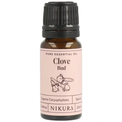 Nikura Clove Essential Oil for Toothache 10ml 100% Pure Natural Bud Perfect Aromatherapy, Diffuser Home Great Self Care, Cleaning Vegan & UK Made