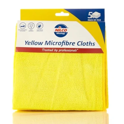 Nilco Microfibre Cloths Yellow 5 Pack Ultra Soft, Highly Absorbent and Streak Free Cleaning Solution