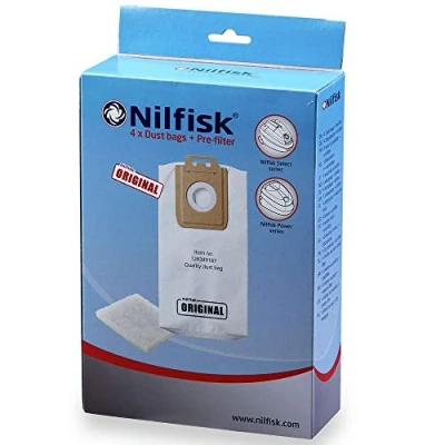 Nilfisk 128389187 vacuum cleaner bag Suitable for appliances of Singer, Bestron, Panasonic and Nilfisk. Suitable for the model numbers (a.o.): Nilfisk SELECT CLASSIC WHITE EU (107405641) vacuum cleaner, Nilfisk SELECT PET CARE (128390027) vacuum cleaner, Nilfisk WCL13P08A1 (128350601 SELECT) vacuum cleaner, Nilfisk POWER P40 (9059901010) vacuum cleaner, Nilfisk 520 (18240001 KING) vacuum cleaner, Nilfisk ELITE ECO (107410976) vacuum cleaner, Nilfisk P40 (9059906010 POWERALLERGY) vacuum cleaner, Nilfisk GM200 vacuum cleaner, Nilfisk POWER SPECIAL (107401890) vacuum cleaner and Nilfisk 107401281 (1006301871 X250) vacuum cleaner.Manufacturer description: genuine original nilfisk power P10, P20, P40, PW10, PW20, select series sms bags & filter set (pack of 4+1).Replacement/alternative product of:Melitta 6765957 vacuum cleaner bag - N7499763 staubsaugerbeutel mp airspace green line, 4 stückNilfisk 147 0416 500 vacuum cleaner bag - packaging 4X hygiene bags + pre-filter power bagNilfisk 107407639 vacuum cleaner bag - dust bags (X4)+pre-filter power series