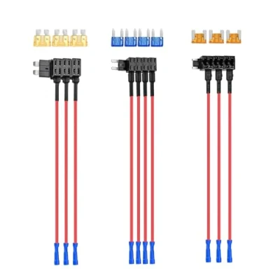 Dual-slot Fuse Holder: Provides 1 fuse holder to protect existing circuits and a second fuse holder to protect new circuit; blue flexible socket tail, very easy to connect to any naked wires by only use a vise Easy to Use: No need to cut or splice wires to install your electronic accessories, convenient and easy to add an extra power or connection to the fuse box Superior Quality: All of them are made from high quality materials, good bending performance, melting resistance and excellent electrical conductivity, durable and practical for your DIY application Multipurpose: You can use this dual-slot fuse holder when adding LED strips, radar detectors, dash cams, or any other electronic that requires direct wiring into the fuse box without cutting or splicing Wide Compatibility: 3pcs low profile mini fuse adapter with 5 Amp low profile mini blade fuse fits for Korean Cars; 4pcs mini fuse adapter with 15 Amp mini blade fuse fits for Japan and US Cars; 3pcs standard fuse adapter with 5 Amp standard blade fuse fits for European Cars