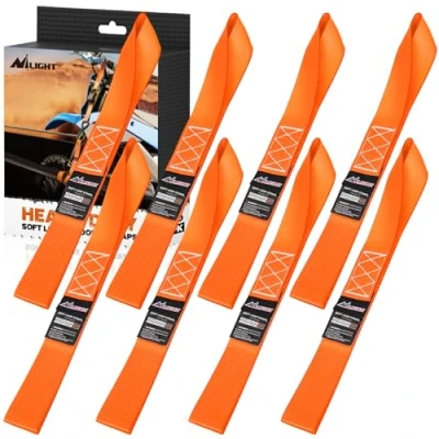 【Superior Quality】Premium and durable resistant polyester webbing with diamond stitching, providing 12000lbs max break strength. It granted the impressive long-lasting performance moving or hauling. 【Easy to Use】These soft loops are easy to use by creating a slipknot, just open loop on each end, warp around and cinch the soft loop, which protects the paint and surface from chipping and scratching. 【Good Partner For Ratchet Straps】Our universal 1.7 inch soft loop is an upgraded option for securing cargo with ratchet straps by creating an extension of a tie down bar and can be used with our strapping system. 【Multiple Uses】These soft loop are perfect for securing cargo and moving equipment on your trailer or truck, such as motorcycle, ATV, UTV, kayak, paddle board, dirtbike, lawnmowers. 【Package Included】8Pcs heavy duty soft loops, 2-year 100% satisfaction after-sales service. If you have any questions during the warranty period, please contact us.