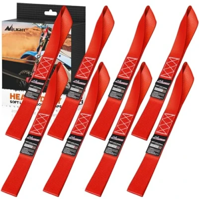 【Superior Quality】Premium and durable resistant polyester webbing with diamond stitching, providing 12000lbs max break strength. It granted the impressive long-lasting performance moving or hauling. 【Easy to Use】These soft loops are easy to use by creating a slipknot, just open loop on each end, warp around and cinch the soft loop, which protects the paint and surface from chipping and scratching. 【Good Partner For Ratchet Straps】Our universal 1.7 inch soft loop is an upgraded option for securing cargo with ratchet straps by creating an extension of a tie down bar and can be used with our strapping system. 【Multiple Uses】These soft loop are perfect for securing cargo and moving equipment on your trailer or truck, such as motorcycle, ATV, UTV, kayak, paddle board, dirtbike, lawnmowers. 【Package Included】8Pcs heavy duty soft loops, 2-year 100% satisfaction after-sales service. If you have any questions during the warranty period, please contact us.