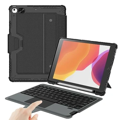 Turn iPad into a Laptop - Nillkin's cover with Keyboard provides RUGGED protection for your iPad, and turns the iPad into a productive laptop. This versatile accessory helps you work efficiently whether traveling, at the office or at home. **Compatible with 2021 iPad 9th Gen (A2602/A2603/A2604/A2605), 2020 iPad 8th Gen (A2270/A2428/A2429/A2430), 2019 iPad 7th Gen (A2197/A2198/A2200). Detachable Backlit Keyboard - Clear keys feedback offers a laptop-like responsive and comfortable typing experience. A full row of function keys, support for iPadOS shortcuts for quick editing of documents, programming, photo editing or video editing, maximizing your productivity. The keyboard features 7 color options and 3 levels of backlit brightness, making it possible to work efficiently even in dark environments Magical Trackpad - The sensitive trackpad allows for precise taps, supports all iPadOS Multi-Touch gestures such as scroll, zoom and drag. Multitask, edit, and browse without touching the screen, significantly improving efficiency. With palm rejection technology, your typing won't be interrupted. Tough Protective Case - The heavy-duty thickened TPU frame and PC back, combined with a corner shockproof design, provide full-body military-grade superb protection for your iPad, safeguarding it from bumps or drops. The surface covered with high quality faux leather, stain-resistant and wear-resistant. Unique sliding camera cover protects the lens while keeping your privacy. Free Angle, Multi-Mode - The kickstand offers adjustment from 110° to 180°, can be placed in landscape or portrait, stable and durable, you can find the perfect angle for working, creating, browsing, taking notes or writing. The keyboard can be easily detached to enjoy drawing or reading, explore more scenes of use. Outstanding Battery Life - With a standby time of up to 180 days and 100 hours of use on a full charge, the keyboard supports long-term outdoor work and business trips. It features auto sleep/wake functionality. Additionally, a holder securely stores the Apple Pencil (not included)