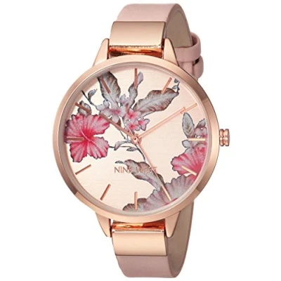 Nine West Women's Floral Dial Strap Watch, NW/2044RGPK