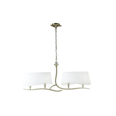 Ninette Linear Pendant 2 Arm 4 Light E14, Antique Brass With Ivory White Shades