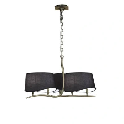 Ninette Pendant 3 Arm 6 Light E14 With Black Shades Antique Brass