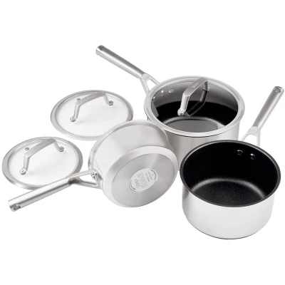 #html-body [data-pb-style=VM5C3TS]{justify-content:flex-start;display:flex;flex-direction:column;background-position:left top;background-size:cover;background-repeat:no-repeat;background-attachment:scroll;border-style:none;border-width:1px;border-radius:0;margin:0 0 10px;padding:10px}Zero stick, chip or flake: Why settle for non-stick when you can have ZEROSTICK? Whereas other pans can rapidly lose their non-stick performance, Ninja ZEROSTICK is up to 20x tougher than traditional non-stick*, tested to withstand 10,000 scrubs*. Durable, long-lasting and guaranteed for 10 years. Stainless steel collection: The best of both worlds, this elegant range is expertly crafted from polished stainless steel with an aluminium core, delivering even heat distribution and excellent high-heat searing. Complete with cast stainless steel handles that are comfortable to hold, it makes the perfect choice for confident chefs, kitchen newcomers and style-conscious cooks. The difference is in the degrees: ZEROSTICK is precision engineered at 17,000°C, fusing plasma ceramic particles to the surface of the pan to create a robust textured surface that interlocks with Ninja’s exclusive coating. The extremely durable, textured cooking surface is metal-utensil safe, scratch resistant and dishwasher safe for easy cleaning. PFOA, lead and cadmium free. 10-Year Guarantee: Covered by Ninja's 10 Year Replacement Guarantee, including the ZEROSTICK coating**. Cook using little to no oil: Exclusive to Ninja, ZEROSTICK stops food from sticking day after day, so your creations easily slide from the pan to your plate. Use little to no oil for a healthier way to cook, without compromising on cooking performance. Perfectly cooked results: Designed to withstand high-heat cooking, even heating and no hot spots deliver consistent results. Easily cook everything from homemade sauces, soups and chilli to delicious pasta and rice dishes; from healthy vegetables to golden caramel and indulgent desserts. Induction compatible: Suitable for all hob types including induction, gas, electric and ceramic. Do you use an induction hob? Did you know the size of your pan can affect cooking performance? Make sure you choose pans that are the right size for your hob ring, as induction technology only works effectively if the base of the cookware matches the size of the ring on the hob. If your pan base is smaller than the hob ring, it may not be recognised. This 5-piece pan set includes: 16cm Saucepan - suitable for a 13cm induction ring 18cm Saucepan - suitable for a 15cm induction ring 20cm Saucepan - suitable for a 17cm induction ring Oven safe to 260°C: Start your creation on the hob, finish to perfection in the oven. Perfect for giving your creation a bubbling, crispy topping or simply keeping your food warm. The oven-safe tempered glass lids have a thick stainless-steel rim, prevent splatter and lock in moisture while ensuring maximum visibility. *3rd party test lab coating abrasion testing 2022**Upon registration with Ninja. When used as directed in the use and care guide.