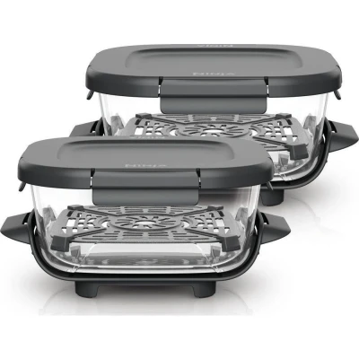 Currys- This set of 1.4 litre Ninja CRISPi glass containers is perfect for prepping and storing your favourite meals - The transparent glass design lets you see your food as it cooks- Its durable, heat-resistant feet keep your kitchen surfaces protected from heat- The BPA-free, leak-resistant snap-lock lid lets you take your meals on-the-go