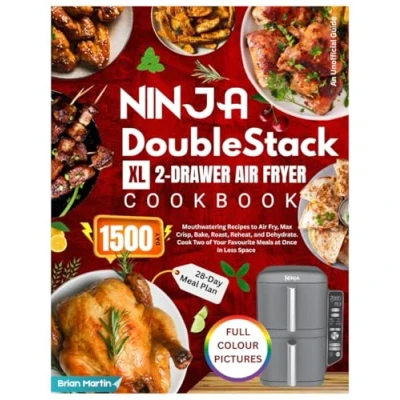 Ninja DoubleStack XL 2 Drawer Air Fryer Cookbook with Full Colour Pictures: 1500 Day Mouthwatering Recipes to Fry, Max Crisp, Bake, Roast, Reheat, ... at Once in Less Space 28 Meal Plan.
