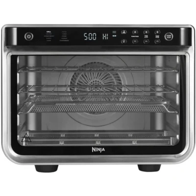 #html-body [data-pb-style=YXNIPHA]{justify-content:flex-start;display:flex;flex-direction:column;background-position:left top;background-size:cover;background-repeat:no-repeat;background-attachment:scroll;border-style:none;border-width:1px;border-radius:0;margin:0 0 10px;padding:10px}Introducing Ninja’s large capacity countertop oven, quickly and evenly cooking complete meals on 2 levels. More than a mini oven with 10 customisable cooking functions – create everything from bubbling cheese-on-toast for breakfast to a whole roast chicken with fluffy roast potatoes for dinner. Up to 40% faster than a fan oven* Quickly and easily create family-sized meals in as little as 30 minutes. Say goodbye to long waiting times with a super-quick 90 second preheat. Enjoy fast, crispy and even results with True Surround Convection – no need to rotate your cooking trays or flip your food. Cook on 2 levels Perfect for family-size meals, this worktop oven delivers quick and even 2-level cooking. You can fit a main and sides at the same time, so there’s no need to use multiple appliances to cook a complete meal. Roast a whole lemon-herb chicken with potatoes, Tuscan roast pork with vegetables, traditional fish and chips, or cook two oven pizzas at the same time. A digital rack guide illuminates to help you choose the optimal oven rack positions based on the selected function. True Surround Convection Enjoy fast, crispy and even results. A high-velocity fan, rear heat source and surround airflow combine to circulate superheated air throughout the entire oven for even cooking on two racks – no need to rotate your cooking trays or flip your food. Top and bottom infrared heating elements enable a temperature range of 40°C - 230°C, while a third rear heat source positioned behind the high-velocity fan creates superheated convection air. A uniquely designed top-to-bottom ventilation system circulates the hot air throughout the entire oven for even cooking on both levels. More than an oven Enjoy limitless meal options with 10 customisable cooking functions in one kitchen appliance. Air Fry – Enjoy fast, extra-crispy results using little to no oil. Up to 75% less fat than traditional frying methods**. Perfect for cooking your favourite fried foods, from breaded chicken goujons and sizzling sausages to oven chips and crispy French fries. Roast – Enjoy a crispy outside and perfectly cooked inside, perfect for oven traybake meals such as lemon and herb chicken breasts with asparagus or salmon fillets with broccoli and sweet potatoes. Whole Roast – Evenly cook and crisp all sides of your roast with no need to rotate it. Simultaneously roast a tender beef joint or 2.25kg chicken with vegetables for a complete meal or cook a larger roast by itself, fitting a 5.4kg turkey. Grill – With top-down heat for a crispy finish, evenly grill kebab skewers and cheesy potato gratin or give nachos and pasta bakes a bubbly grilled topping. Bake – Easily bake your favourite cookies, cakes and pastries, or create savoury dishes such as pasta bakes, homemade quiche, jacket potatoes, fish pie and more. Pizza – Your very own pizza oven at home! The dedicated pizza setting is designed to cook frozen or homemade pizzas to perfection. Dehydrate – Gently dehydrate ingredients such as fruit, vegetables and meat to create healthy snacks, from beef jerky to dried fruit. Reheat – Restore leftovers to that fresh-out-of-the-oven finish without overcooking, from pizza to spring rolls. Toast – Quickly toast up to 8 slices of bread to your desired finish with the in-built shade selector. Bagel – Perfectly toast up to 8 bagel halves on the wire rack, with a deliciously crunchy outside. Easy to Use Easily select a cooking function, time and temperature/shade with touchscreen controls and a digital display, all located on the sleek oven door handle. When the door is open, the settings freeze to prevent any accidental changes to the cooking cycle. A removable crumb tray slides out so you can easily clean up crumbs and small spills. The cooker comes complete with 2 Wire Racks (each fitting a 12” pizza), an Oven Tray, Roast Tray and an Air Fry basket (holding up to 1.8kg of ingredients). Get started straight away with a Chef-Created Recipe Guide included in the box, packed with recipes and cooking charts to unlock your creativity. Dimensions: H33.5cm x W43.5cm x D50.5cm *Tested against sausages and fish fingers, including pre-heat.**Tested against deep fried, hand cut French fries.We are currently offering FREE Delivery Across Mainland UK – Find Out More