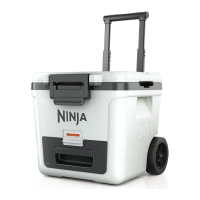 FROSTVAULT TECHNOLOGY: Dry Zone drawer keeps food cool, dry and separate. Store at food-safe temperatures (under 4.5°C) for days*. Easily grab your favourite items without digging through ice. DURABLE, ALL-TERRAIN WHEELS: Wheeled cooler is easy to transport. Perfect for travelling, camping trips, picnics, BBQs, road trips and more. 30-QUART/28-LITRE CAPACITY: Fits up to 48 cans with no ice, or 20 cans with ice. Premium ice-retention keeps ice for days*. DURABLE & SECURE: Doubles up as a handy seat. Heavy-duty construction. Easy to transport with durable moulded carry-handles. Lockable lid and drawer latch. Easy to open one-handed. INCLUDES: Ninja FrostVault 30QT/28L Wheeled Cooler with integrated Dry Zone drawer. Dimensions: H:47.7cm x W:49.9cm. Weight: 13.1kg. Colour: Cloud White 5 YEAR GUARANTEE: Upon registration with Ninja. (*Internal test at 25°C on FrostVault filled with ice and closed, measuring time (in days) for all ice to melt and cavity temperature to exceed 4.5°C. Actual performance may vary in real-world usage.)