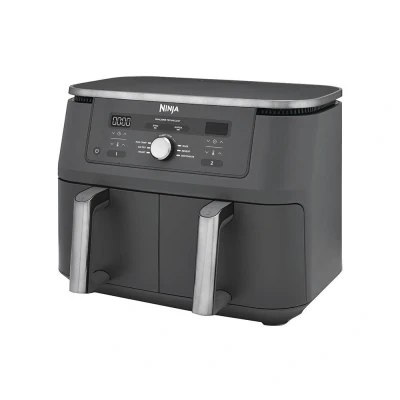 #html-body [data-pb-style=L7CQ9G8]{justify-content:flex-start;display:flex;flex-direction:column;background-position:left top;background-size:cover;background-repeat:no-repeat;background-attachment:scroll} Brand new look: Updated design with dark grey metallic trim Large capacity Dual Zone air fryer: Cook 2 foods, 2 ways – both ready at the same time 6 cooking functions: Air Fry, Max Crisp, Roast, Bake, Dehydrate, Reheat Cook up to 25% more*: 9.5L capacity feeds up to 8 people. Fit a 2kg chicken in each drawer Energy-efficient: Save up to 65% on your oven energy bill** Quick meals: Up to 75% faster than fan ovens*** Air Fry: Up to 75% less fat than traditional frying methods**** Includes 2x non-stick drawers, 2x non-stick crisper plates, Recipe Guide. Dimensions: H:32.5 x W:41.5 x D:27cm. Weight: 8.8kg. Colour: Gun Metal Grey Dual Zone cooking just got a brand new look. Meet the large capacity air fryer that cooks 2 foods, 2 ways, and finishes at the same time – now with an updated design and sleek, dark grey metallic trim. Cook up to 25% more*: The large 9.5L capacity is perfect for feeding up to 8 people, fitting up to 1.4kg of fries or a 2kg chicken in each drawer. 2 Independent Cooking Zones: Mix and match cooking functions, times and temperatures across 2 separate cooking drawers to create endless meal options. Get creative with 6 ways to cook: Air Fry, Max Crisp, Roast, Bake, Reheat and Dehydrate. SYNC: Cook 2 different foods with different temperatures, times and settings using 2 separate cooking drawers – and have both ready to serve at exactly the same time! Both drawers finish cooking at the same time, so you can enjoy freshly-cooked mains and sides together – no need to use different appliances, or let your side go cold while your main finishes cooking. It’s also perfect for catering to two different dietary requirements. MATCH: Cooking for extra guests or feeding the whole family? Use the MATCH feature to duplicate the same function, time and temperature settings across both drawers – perfect for doubling your serving size, or cooking two different foods with the same instructions. Just cooking for yourself? No problem – you can also cook in a single drawer. Save up to 65% on your oven energy bill**: Quickly cook up to 75% faster than fan ovens***. 6 cooking functions: Air Fry: Enjoy healthier versions of your favourite fried foods using little to no oil – up 75% less fat than traditional frying methods****. Air frying evenly circulates super-hot air around food to remove excess moisture and give it a delicious golden finish. Max Crisp: Cook from frozen to crispy in minutes, as temperatures of 240°C evenly cook and crisp your favourite frozen foods. Perfect for quick, delicious dinners. Roast: Enjoy your favourite roasted meat, fish and vegetables, including herb-crusted salmon fillets, a 2kg roast chicken, pork chops with crispy crackling, fluffy roast potatoes and more. Bake: Enjoy freshly-baked bread and homemade sweet treats, from muffins and brownies to cakes and cookies. Dehydrate: Create delicious dried fruit snacks, homemade vegetable crisps, jerky, and even make your own dried herbs and garnishes. Reheat: Restore leftovers to that delicious fresh-out-of-the-oven finish, perfect for reviving leftover pizza, quiche, spring rolls and more. Easy to use: Customise every cook with a simple digital control panel, variable temperature controls, and a countdown timer to see how much cooking time is left. The Auto-Adjust Fan automatically changes speeds based on the cooking function selected. Easy to clean: The non-stick drawers and crisper plates are dishwasher-safe for easy clean-up. Get started straight away: There’s a Chef-Created Recipe Guide included in the box, packed with Ninja Air Fryer recipes to kick-start your imagination. *Compared to DZ300, 7.6L.**Testing and calculations based on recommended cook time for sausages, using air fry function versus conventional ovens.***Tested against fish fingers and sausages, including pre-heat.****Tested against deep fried, hand-cut French friesNinja MAX 6-in-1 Dual Zone Air Fryer 9.5L DZ400UK