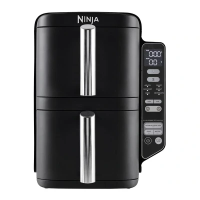 The Ninja Double Stack 2-Drawer Air Fryer SL300UK is a versatile and space-saving kitchen appliance designed for families. This innovative air fryer features a vertical design with two drawers, allowing you to prepare multiple dishes simultaneously while occupying less counter space than traditional side-by-side models. Its sleek profile makes it easy to fit under kitchen cabinets, so you can maintain a clutter-free countertop without sacrificing capacity.