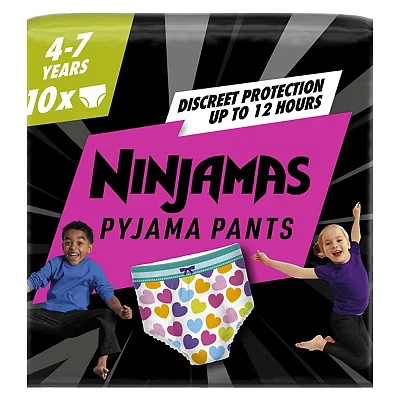 Ninjamas Heart Pyjama Bottoms, 10 Absorbent Nightwear, 7 Years, 17 kg 30