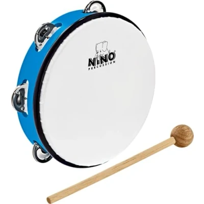 Nino Percussion Headed Tambourine Instrument Musical for Children from 5 Years Diameter 8 inch Plastic, Blue (NINO51SB)